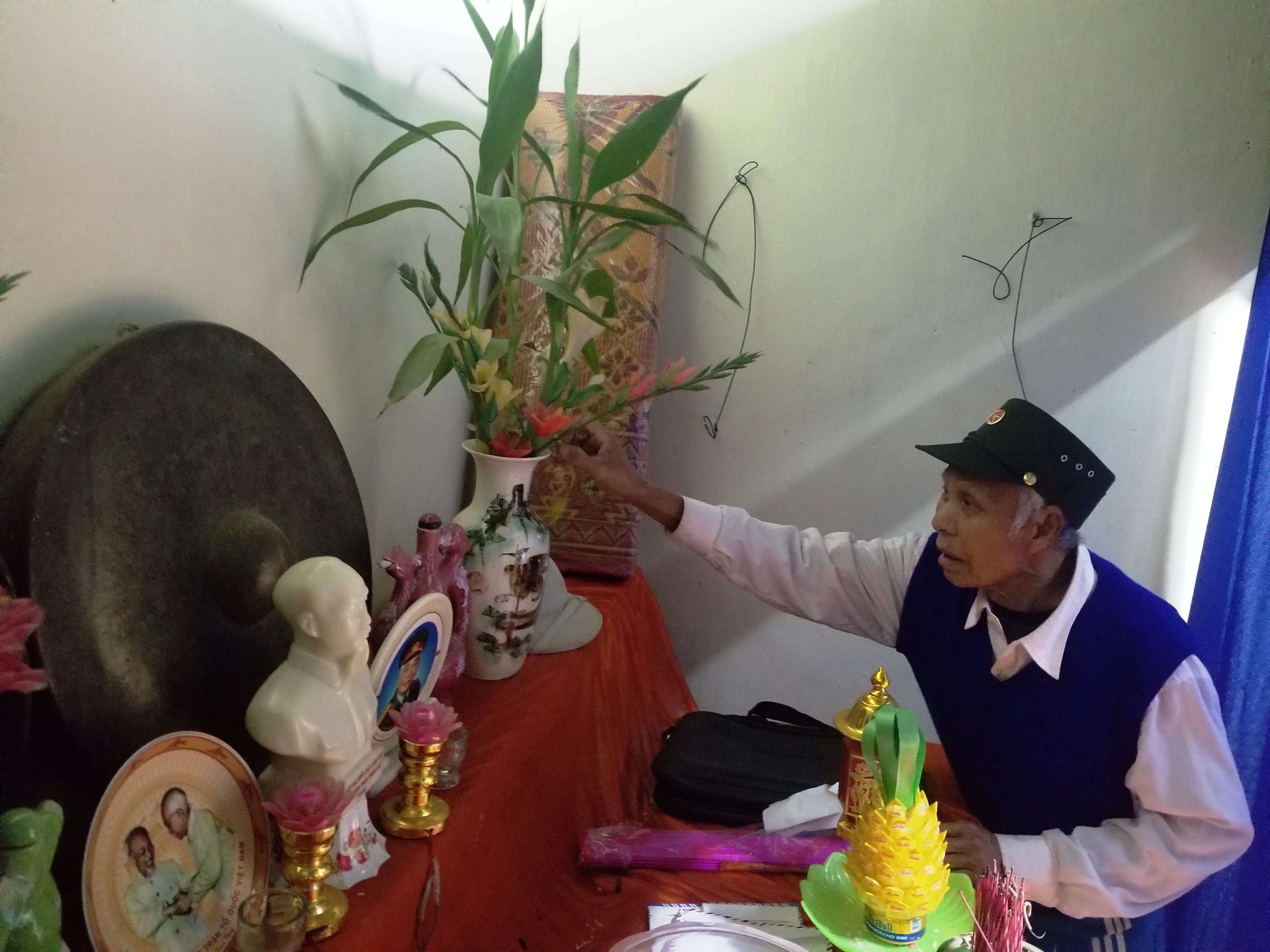 Trên bàn thờ gia tiên, dưới lá cờ Tổ quốc, di ảnh của Bác được ông đặt ở nơi trang trọng nhất.